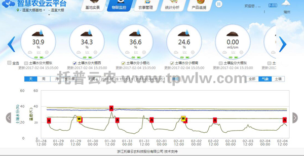 浙江托普云農水肥一體化監控系統能夠實時監測基地大蔥的種植環境,實現智能化、定時定量的灌溉,其中包括系統云平臺、視頻監控系統、采集終端、施肥機、過濾系統、閥門控制器、電磁閥、田間管路等。系統所采集的數據實時上傳到托普智慧農業云平臺,并快速進行統計分析,解決了工作人員對數據的采集分析需求,并確保了數據采集的精準、快速、全面。用戶可通過手機APP和電腦端遠程實時查看基地現場視頻、水肥流量統計數據,也可遠程手動設置水肥參數,很大程度上提高了灌溉用水效率。智能硬件