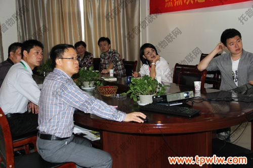對于記者十分好奇的農業物聯網,朱總舉了一個實際應用的例子:農業物聯網智能溫室環境監控與控制系統。這套系統可自動監控溫室大棚里作物生長的各類環境參數,例如土壤水分、空氣溫度、光照強度、二氧化碳濃度等,然后通過無線傳輸,將這些數據發送至服務器,服務器可對這些數據進行分析并發至響應的指令,例如土壤水分太低了,系統就會自動對作物進行灌溉,溫度太高了,就會自動開啟風機通風降溫等等。當然,農業物聯網絕非僅僅是溫室大棚,在農業、畜牧業、水產養殖業、環境、物流等都可以廣泛地應用。對于托普的托普的農業物聯網,朱總信心滿滿,說到:“托普公司時刻關注國內外相關行業內的先進技術,現已擁有大量完全自主知識產權的技術和產品,公司現在物聯網已經完成標準化系統建設,在農業物聯網大時代到來之際,我們必將乘風破浪,奮勇向前。”圖為:浙江衛視記者對公司產品做詳細記錄