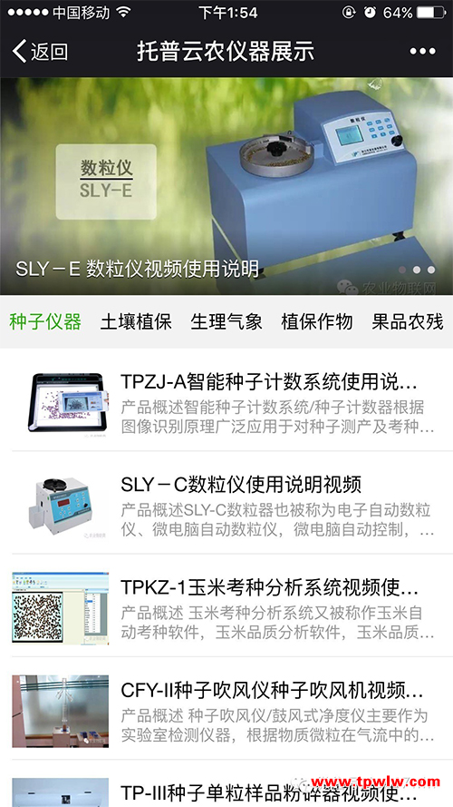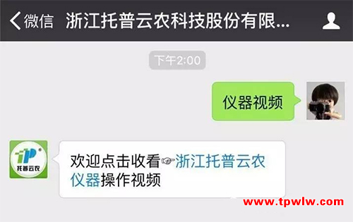 現在只需關注“浙江托普云農科技股份有限公司”的微信公眾號,回復對應的關鍵字,即可查看儀器操作視頻,比如需要查看智能種子技術系統(tǒng)的操作視頻,只需要回復“種子計數系統(tǒng)”或者儀器型號即可了解如何使用儀器,查看儀器的相關參數和功能。