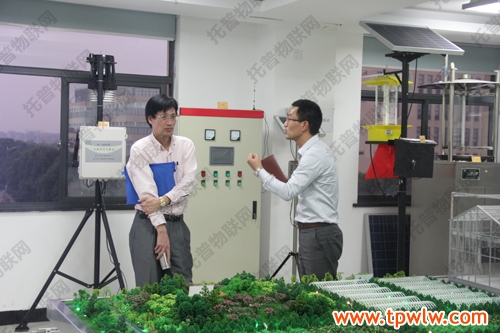 圖為:托普儀器陳渝陽總經理在向支巨振處長介紹“智慧農業”