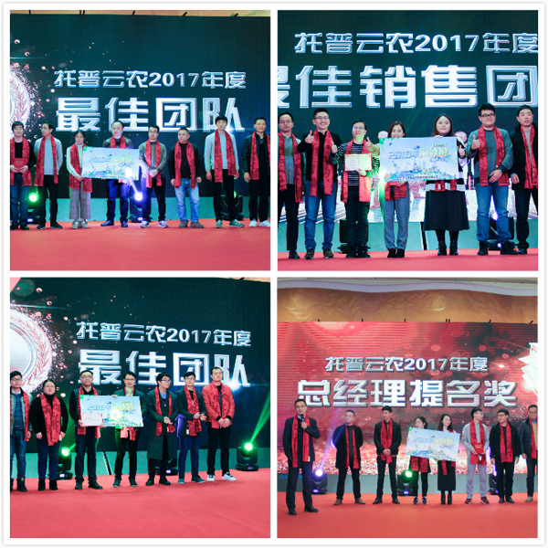 農業信息化是農業現代化發展的基礎。過去一年,托普云農在農業信息化的道路上屢獲農業部門和行業的認可。憑借前沿的技術研發與落地應用能力,先后榮獲世界物聯網博覽會、匠農杯等業內頂級大獎。在榮耀的成績背后,離不開一大批優秀員工和團隊的辛勤付出。針對2017年表現突出的團體和個人,現場頒發出年度銷售精英、創新改善、優秀員工獎、最佳新銳獎等個人獎項以及最佳團隊、總經理提名等團隊類獎項。