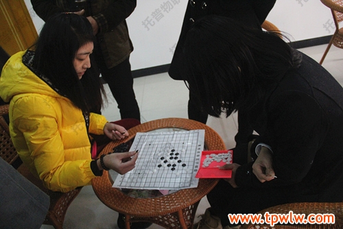 相比起企業學院球賽的熱鬧,在員工之家進行的棋類比賽就相對安靜了,但比賽的緊張氛圍并沒有因此而減弱。圖為:托普儀器張總和羅經理正在進行五子棋的比拼