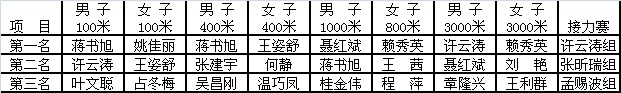 此次田徑運(yùn)動(dòng)會(huì)分為男子100米、女子100米;男子400米,女子400米;男子1000米,女子800米;男子3000米,女子3000米;男女混合4*200米接力賽。賽制為,初賽?。拷M取前兩名和成績最好的兩名共六名人員進(jìn)入決賽)前三名進(jìn)入決賽,決賽取前三名為獲獎(jiǎng)選手。上午9:10,運(yùn)動(dòng)會(huì)在女子400米初賽中拉開帷幕。圖為:跑道上的精彩瞬間