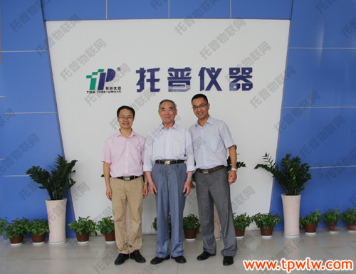 圖為:陳耀邦部長(中)、托普儀器陳渝陽總經理(右)、朱旭華副總經理(左)合影