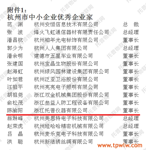 2014年12月5日圖為:杭州市中小企業優秀企業家名單