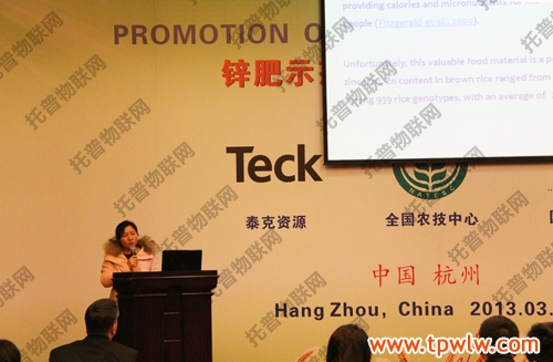 全國農技推廣中心節水處高祥照處長主持會議,全國農技推廣中心杭大鵬書記、浙江省農業廳陳利江副廳長、農業部種植業管理司王金等處長、浙江省農產品質量檢測中心黃國洋主任、加拿大泰克資源安德魯·格林教授、國際鋅協會樊明憲教授出席了會議開幕式并相繼發表了講話。全國農技推廣中心杭大鵬書記對2012年的節水工作所做出的成就表示肯定,并強調,在2013年要繼續強化土壤墑情監測工作,搞好鋅肥示范推廣工作,加大節水工作研究力度。