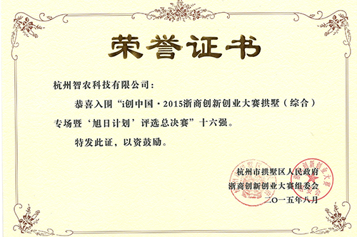 2015年8月5日,i創中國· 2015浙商創新創業大賽拱墅區專場暨“旭日計劃”評選總決賽(以下簡稱“浙商創新創業大賽”)如期舉行。杭州智農科技有限公司參與總決賽,并成功躋身16強之列。