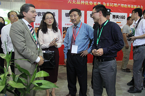 農業部種子局局長張延秋、副局長馬淑萍一行還帶領前來參加中國-阿根廷種業交流峰會的阿根廷代表團參觀了托普云農展區。阿根廷國家種子研究所董事會主席拉威諾勒 萊英姆多農業工程師仔細觀摩了公司所展出的種子檢驗儀器和系統,并與陳渝陽總經理進行交流。