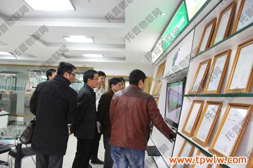圖為:托普儀器技術人員為吳處長等領導演示物聯網系統的室內操作