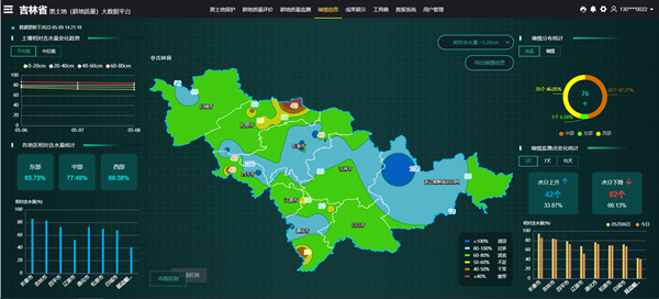 吉林耕地質量保護大數據平臺,利用GIS、物聯網、人工智能等新一代信息技術,圍繞“1+1+N”模式,搭建了“一個中心、一個平臺、N個應用”模式。系統匯集了土、水、肥三大耕地質量數據,宏觀展示了全省及各市的土壤類型、耕地質量等級、土壤養分含量等數據,對數據進行統一歸納與整合。將以前被忽略的數據進行有效利用,提高了部門間數據共享的效率,形成了可靠的決策駕駛艙,為落實“藏糧于地,藏糧于技”戰略夯實了數據基礎。