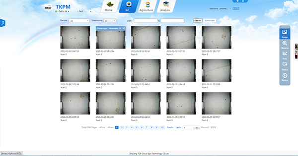 除了節水節肥,綠色植保也必不可少。在掛滿番茄的種植大棚外,布局著一些托普遠程拍照蟲情測報燈和智能氣象監測設備,通過對大棚外部蟲情和氣象的監測,以及聯動分析,可以預判區域蟲情發生趨勢,做好防控準備。大棚內部還分布著一些殺蟲燈,利用昆蟲的趨光性原理,采用不同波長,誘殺趨光性害蟲,從而達到農藥的減量化施用,保障綠色高質量農產品的產出。
