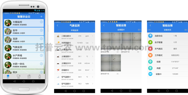 據湖南攸縣植保站的工作人員介紹,該套系統由蟲情信息自動采集分析系統、遠程小氣候信息采集系統、視頻監控設備組成,可實時自動完成蟲情信息、苗情信息、田間氣候信息的數據采集,并自動上傳至托普智慧農業云平臺。托普遠程可拍照式蟲情測報燈可實現在無人監管的情況下,自動完成誘蟲、殺蟲、蟲體分散、拍照、運輸、收集、排水等系統作業,并實時將蟲害情況上傳到托普智慧農業云平臺,在網頁端顯示識別的蟲子,根據識別的結果,對蟲害的發生與發展進行分析和預測。