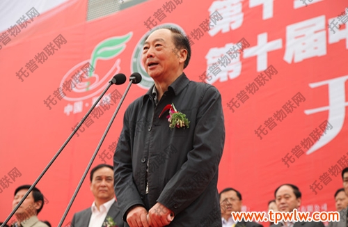 圖為:國務院參事、農業部原副部長劉堅宣布大會開幕