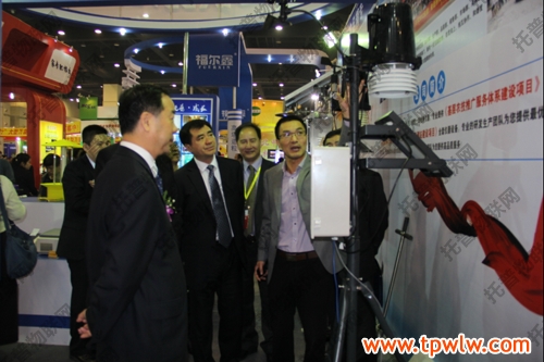 圖為:農業領導參觀托普的無線墑情監測系統圖為:參觀人員紛紛索取托普產品資料