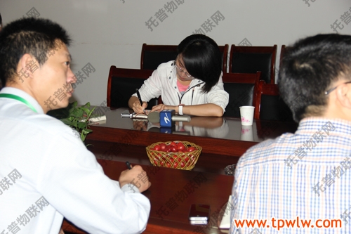 對于記者十分好奇的農業物聯網,朱總舉了一個實際應用的例子:農業物聯網智能溫室環境監控與控制系統。這套系統可自動監控溫室大棚里作物生長的各類環境參數,例如土壤水分、空氣溫度、光照強度、二氧化碳濃度等,然后通過無線傳輸,將這些數據發送至服務器,服務器可對這些數據進行分析并發至響應的指令,例如土壤水分太低了,系統就會自動對作物進行灌溉,溫度太高了,就會自動開啟風機通風降溫等等。當然,農業物聯網絕非僅僅是溫室大棚,在農業、畜牧業、水產養殖業、環境、物流等都可以廣泛地應用。對于托普的托普的農業物聯網,朱總信心滿滿,說到:“托普公司時刻關注國內外相關行業內的先進技術,現已擁有大量完全自主知識產權的技術和產品,公司現在物聯網已經完成標準化系統建設,在農業物聯網大時代到來之際,我們必將乘風破浪,奮勇向前。”圖為:浙江衛視記者對公司產品做詳細記錄