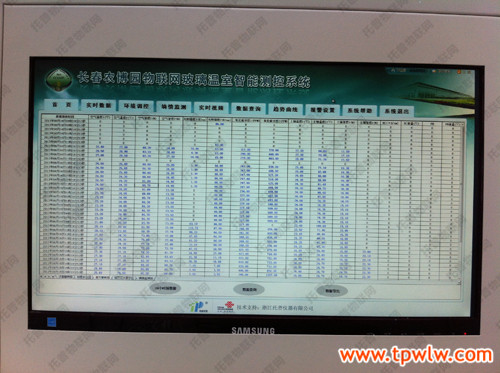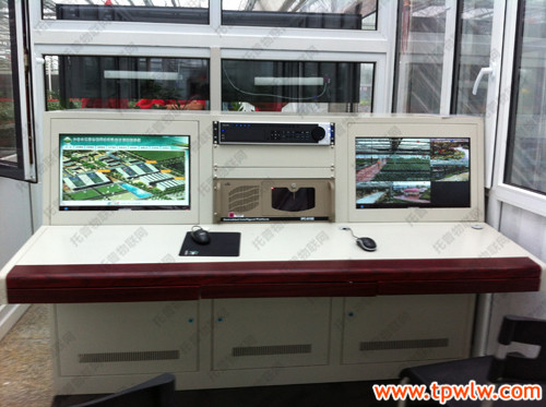 記者:所謂物聯網,其實簡單的說就是物物相連,互相感知。大家看我身后的一組探頭(托普儀器固定式無線農業氣象綜合監測站),包括這個是測量溫度的,這個是測量土壤墑情的,上面還有測量二氧化碳濃度的,測量光照強度的。那這些測量數據都會上傳到我身后的中央控制室內的計算機里,通過計算機的計算,再控制風扇、噴灌…這些設備的運轉。
