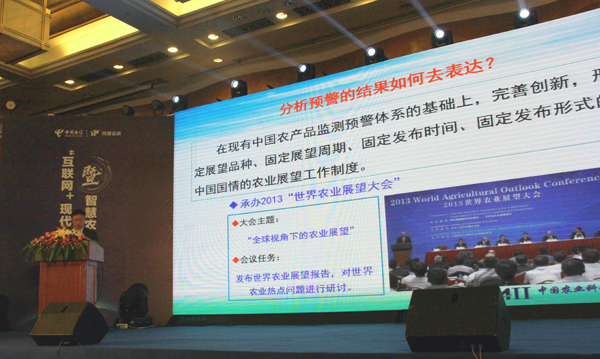 例如我在做農業展望大會就是一個出口,所謂農業展望就是在監測預警的基礎上,形成固定展望的品種,固定展望的周期,固定發布的時間,固定發布形式的一個工作制度。澳大利亞1977年開始做展望大會,開到3月8號到今年舉行了46屆。中國從2013年開始承辦世界農業展望大會, 2017年展望大會是4月20號-21號在北京國際會議中心開,預計規模800人。展望大會是中國的貿易權,中國數據獲取能力、數據分析能力的一次體現,歡迎大家來參加。