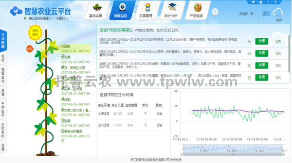 托普云農(nóng)在戰(zhàn)略發(fā)布會上帶來的標(biāo)準(zhǔn)化智能大棚控制柜,可將空氣溫濕度、土壤溫濕度、光照強(qiáng)度等各類傳感器數(shù)據(jù)信息傳輸?shù)娇刂乒瘢ㄟ^無線傳輸至云平臺,農(nóng)民通過手機(jī)APP即可查看大棚內(nèi)的各項環(huán)境信息,并進(jìn)行相應(yīng)的控制。如定時控制:設(shè)定灌溉的開啟時間和結(jié)束時間,設(shè)備便會根據(jù)設(shè)定的指標(biāo)自動完成灌溉;閾值設(shè)置:設(shè)定好閾值溫度不高于30℃,如果空氣到達(dá)30℃以上,卷膜會自動卷起;遠(yuǎn)程控制:如需卷被,用戶只需通過APP點擊需要控制的大棚,點擊打開,保溫被會自動卷起。只需一臺智能手機(jī)就可管理遠(yuǎn)在千里之外的溫室大棚。