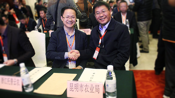 托普云農朱旭華代表公司與昆明市農業局進行簽約