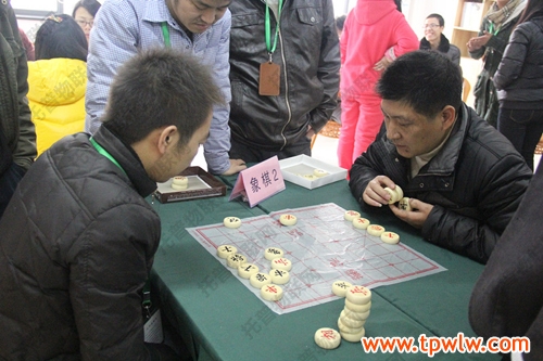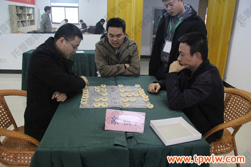 相比起企業學院球賽的熱鬧,在員工之家進行的棋類比賽就相對安靜了,但比賽的緊張氛圍并沒有因此而減弱。圖為:托普儀器張總和羅經理正在進行五子棋的比拼