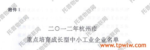 為進一步貫徹落實“實業(yè)興市”戰(zhàn)略,加快推進杭州市中小企業(yè)轉(zhuǎn)型升級,保持工業(yè)經(jīng)濟平穩(wěn)較快發(fā)展,按照《杭州市成長型中小工業(yè)企業(yè)五年培育計劃》要求,杭州市經(jīng)濟和信息化委員會確定浙江托普儀器有限公司為2012年市重點培育成長型中小工業(yè)企業(yè)。