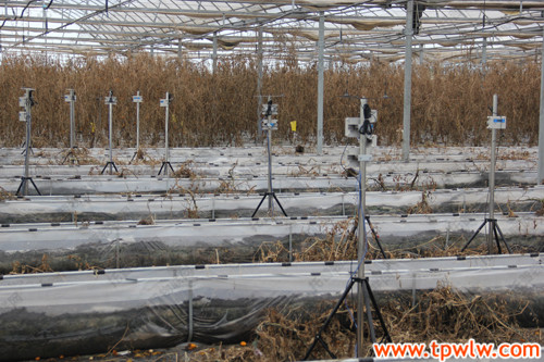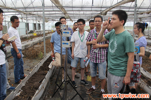 圖為:大棚內所種作物????在大田的參觀中,大家看到了工作中的田間氣象站及中繼節點,在檢測土壤信息的同時,還兼顧測試氣象情況,為實現合理化灌溉及用肥提供科學依據。