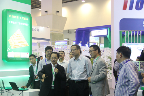 四大系統及完備的儀器設備,向一眾參展嘉賓展示了托普農業物聯網系統的現代化與智能化,使眾人欣喜的認識到及時掌握“從農田到餐桌”的詳細信息,在物聯網時代已經成為可能。圖為:領導參觀