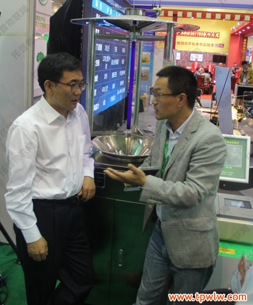 農交會期間,張合成司長一行親臨托普儀器展臺考察指導工作,托普儀器陳渝陽總經理詳細介紹了此次展出的農業物聯網“四大系統”平臺:設施農業自動監測與控制平臺、農作物病蟲害監測預警信息平臺、土壤墑情監測與預警信息平臺、食品安全監控與追溯信息系統。張合成司長表示,信息化技術是現代農業的重要發展方向,應加強研究力度,提高整體應用水平。圖為:張合成司長查看托普農業物聯網系統及其傳感器