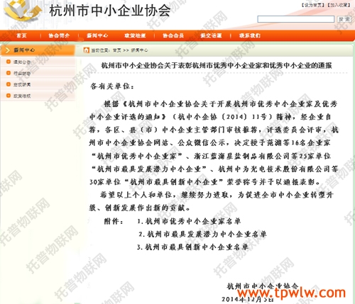 2014年12月5日圖為:杭州市中小企業優秀企業家名單