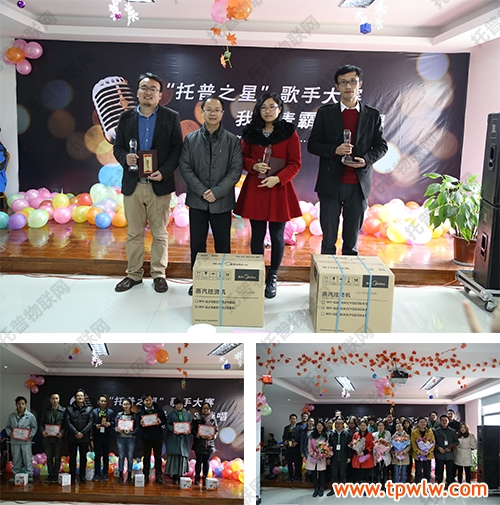 在鮮花和掌聲的簇擁下,本次“托普之星歌手大賽,我是麥霸聽我唱”的大型活動完美落幕,這是托普儀器舉辦的第一次歌唱類活動,充滿了創(chuàng)意和精彩,彰顯了全體員工的青春活力與團結(jié)一心。眾人紛紛期待2015年再次舉辦第二屆歌手大賽,延續(xù)動聽歌聲,延續(xù)青春風采!圖為:朱總與冠亞季軍合影、張總與榮獲“托普之星”十佳歌手稱號