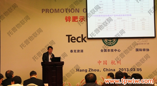 在上午的鋅肥示范推廣技術培訓與研討會上,會議邀請了國際專家加拿大泰克資源安德魯·格林教授、國際鋅協會樊明憲教授、國內專家浙江大學副教授馮英、天津市土壤肥料工作站鄭育鎖科長講解了鋅肥技術以及鋅肥在中國農業生產中試驗示范研究結果。據國際鋅協會報道,全球種植谷物的土地中有50%存在缺鋅的潛在危險、而我國土壤普遍缺鋅。農作物缺鋅主要與干旱缺水、鹽堿、漬澇等農田環境有關,科學施用鋅肥是解決農業缺鋅問題的主要途徑。近年來,隨著節水農業的不斷發展,水肥一體化逐漸成為新的鋅肥科學施用方式。科學施用鋅肥,能夠提高作物產量,改善農產品品質。為促進鋅肥的科學施用,廣泛宣傳鋅對作物生產和人體健康的作用,全國農技推廣中心與國際鋅協會、加拿大泰克資源合作開展鋅肥示范推廣工作,并大力培養應用技術人才、開展田間技術指導。