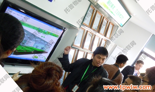 圖為:托普儀器技術(shù)人員為參觀者講解物聯(lián)網(wǎng)知識