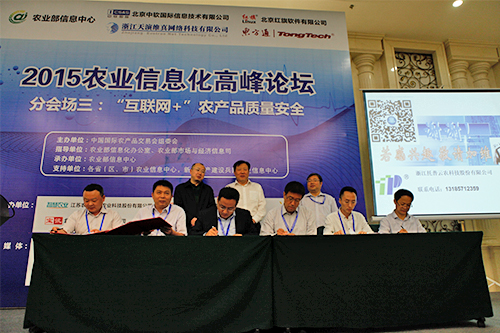 托普云農(nóng)作為平臺(tái)成員之一在論壇現(xiàn)場(chǎng)還進(jìn)行了隆重的農(nóng)產(chǎn)品質(zhì)量安全物聯(lián)網(wǎng)創(chuàng)新與應(yīng)用推進(jìn)協(xié)作平臺(tái)成立簽約儀式。農(nóng)業(yè)部農(nóng)產(chǎn)品質(zhì)量安全監(jiān)管局廣德福巡視員、農(nóng)業(yè)部信息中心張興旺主任出席并見(jiàn)證。