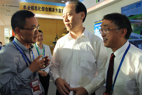 7日下午,農(nóng)業(yè)部余欣榮副部長、農(nóng)業(yè)部市場與經(jīng)濟信息司王小兵副司長一行蒞臨托普展區(qū),就農(nóng)業(yè)物聯(lián)網(wǎng)相關(guān)問題與陳渝陽總經(jīng)理、朱旭華副總經(jīng)理親切交流。余副部長表示,在科技飛速發(fā)展的今天,農(nóng)業(yè)物聯(lián)網(wǎng)的系統(tǒng)及硬件技術(shù)已經(jīng)相對成熟,但是除此之外,還要與射頻技術(shù)緊密結(jié)合,進一步拓展技術(shù)領(lǐng)域,提高農(nóng)業(yè)物聯(lián)網(wǎng)的科技含量。