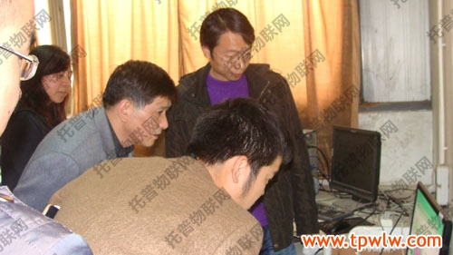 圖為:托普工作人員在介紹通過網(wǎng)絡(luò)來控制種植大棚里的各項(xiàng)指標(biāo),右二:戴守勤副處長