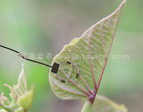 2.打開上、下夾使傳感器與葉子固定,且需要將傳感器探頭(電熱調節器)置于葉子背陽面且充分接觸,安裝時應避免經常按、壓探頭,如野蠻操作可能導致損壞。