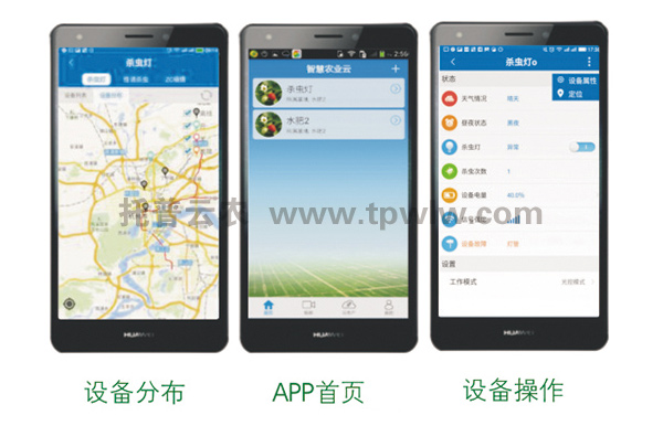 2、可通過Web端與APP遠程控制。足不出戶就可以殺蟲燈了解地理位置、設備編號、基地名稱、故障報警信息。