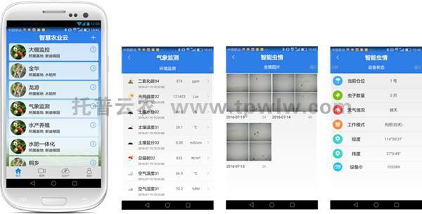 托普病蟲害監(jiān)測預警系統(tǒng)由蟲情信息自動采集分析系統(tǒng)、孢子信息自動捕捉培養(yǎng)系統(tǒng)、遠程小氣候信息采集系統(tǒng)、病蟲害遠程監(jiān)控設(shè)備、害蟲性誘智能測報系統(tǒng)等設(shè)備組成,可自動完成蟲情信息、病菌孢子、農(nóng)林氣象信息的圖像及數(shù)據(jù)采集,并自動上傳至云服務(wù)器,用戶通過網(wǎng)頁、手機即可聯(lián)合作物管理知識、作物圖庫、災害指標等模塊,對作物實時遠程監(jiān)測與診斷,提供智能化、自動化管理決策,是農(nóng)業(yè)技術(shù)人員管理農(nóng)業(yè)生產(chǎn)的“千里眼”和“聽診器”。