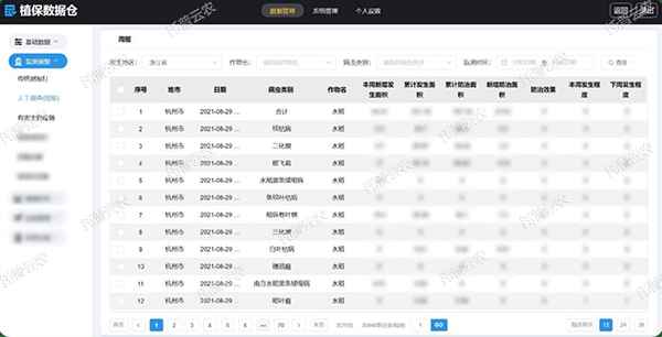 植保數(shù)據(jù)倉:采集全省農(nóng)業(yè)生產(chǎn)經(jīng)營主體、農(nóng)資生產(chǎn)經(jīng)營企業(yè)、植保工程(植保測報點、疫情監(jiān)測點)以及農(nóng)藥生產(chǎn)使用廢棄物等數(shù)據(jù)。實現(xiàn)一體化數(shù)據(jù)填報和省市縣三級業(yè)務(wù)貫通,解決人工填寫、人工統(tǒng)計、重復(fù)填報、層層上報的難題。