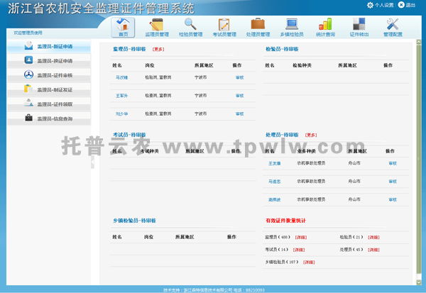 負責農機登記及駕駛證業務的管理工作,建立統一的農機監理業務計算機管理系統;依法確定注冊登記農機的機型;負責考試員、檢驗員的考核、發證工作等。