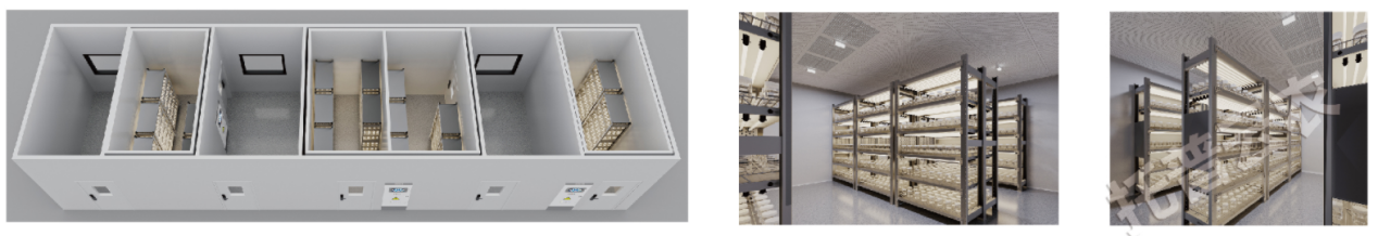 通過室內環境模擬,研究林木生長全周期變化,根據用戶栽培作物高度科學合理定制排布培養架或頂置光源